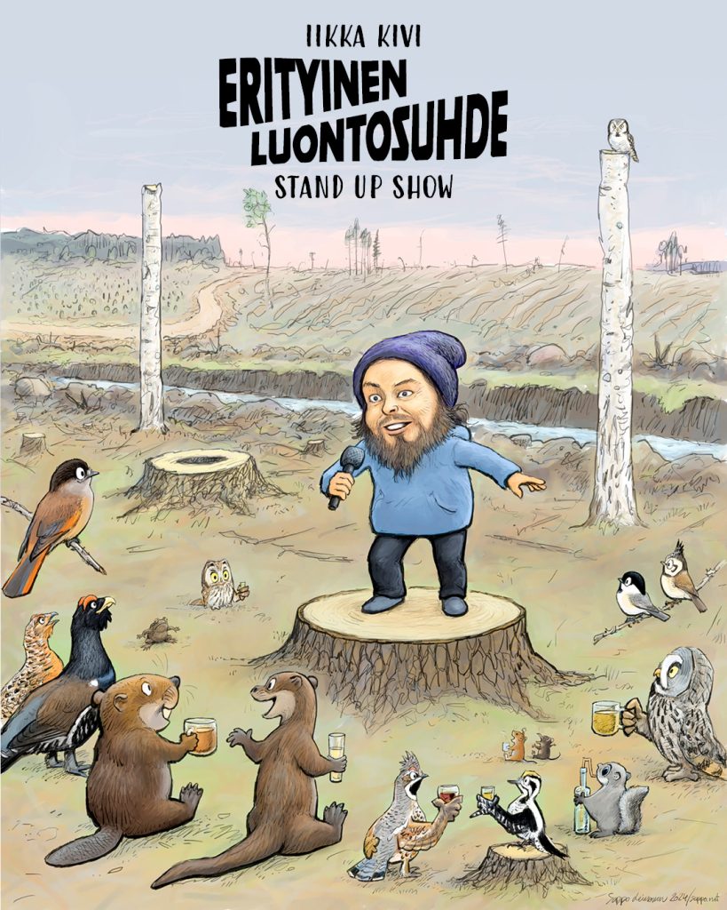 Iikan stand up -soolonäytös Erityinen luontosuhde herättelee suomalaisia kokemaan, vaalimaan ja suojelemaan omaa suhdettaan luontoon sekä kysyy, miten karhunkaatajien kansan jälkeläisistä tuli valkoposkihanhista stressaantuvia sähköskuuttaajia. Ilmapiirin kiristyessä ja jakolinjojen syventyessä on tärkeää muistaa, että yksi asia on meille kaikille yhteinen: Suomen luonto.